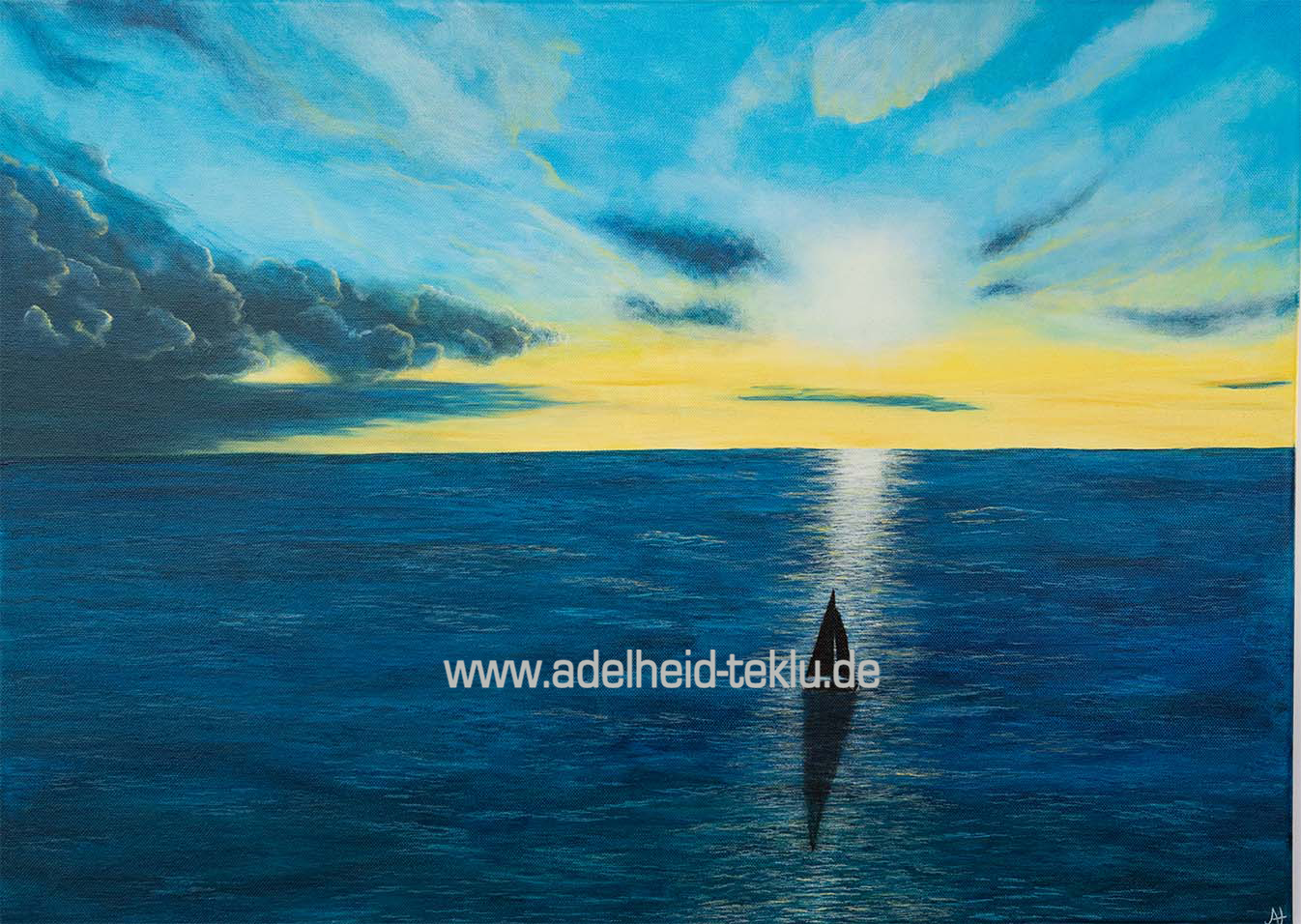 Ein kleines Boot auf weiter See – umgeben von Tiefe, Weite und aufziehenden Wolken. Und doch fällt ein Licht auf den Weg, ruhig und klar, als würde es den Kurs zeigen.