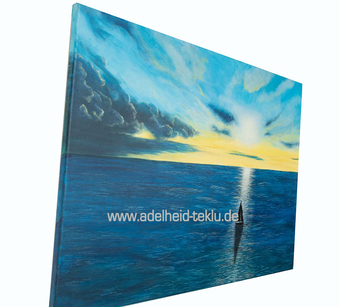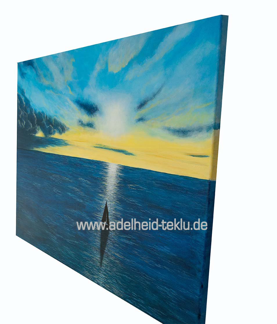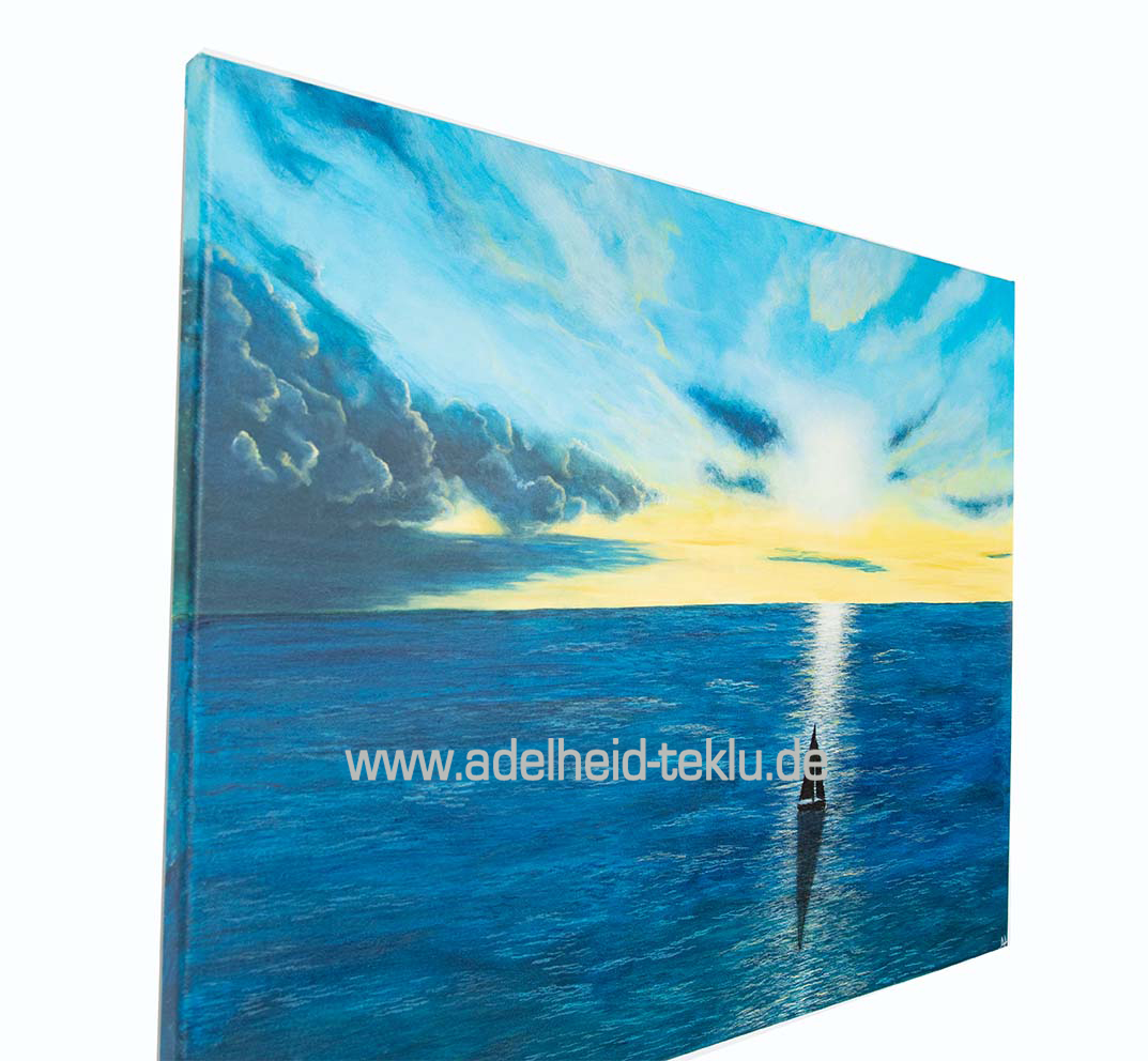Dieses Gemälde erzählt von Momenten, in denen das Leben unruhig wird. Von Zeiten, in denen die Wellen höher schlagen – und gleichzeitig von der leisen Gewissheit, dass wir nicht allein unterwegs sind.